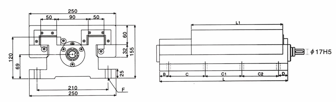 | 型號(hào) | L1 | B | C | C1 | C2 | D | L | F | 軸徑 Shaft diameter |